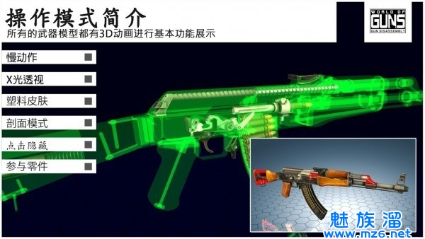 1.3D模型,各种视角,动态工作效果,组装拆解,完全基于实际。让你深刻且全面了解枪的原理。