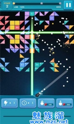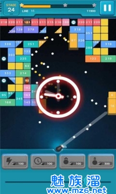 1、游戏中,你需要控制一个球球发射器清除场上的所有砖块。