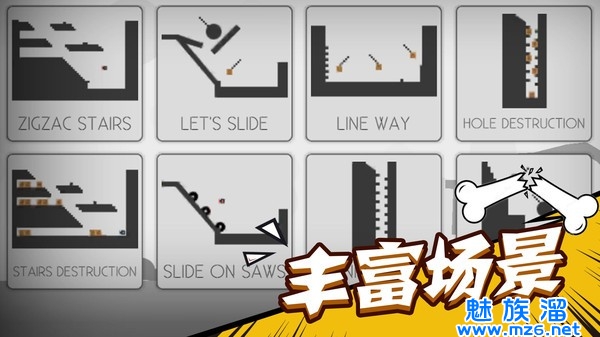 3、灵巧的掌握好跌落的力度,灵活运用道具,火柴人骨折得分会越高哦!快来试试看!