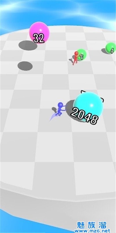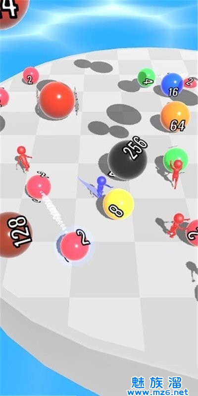 2、在这里玩家需要滚动自己的数字球不断的吞噬变成更高数值的球球;