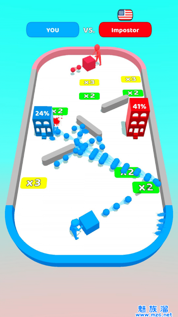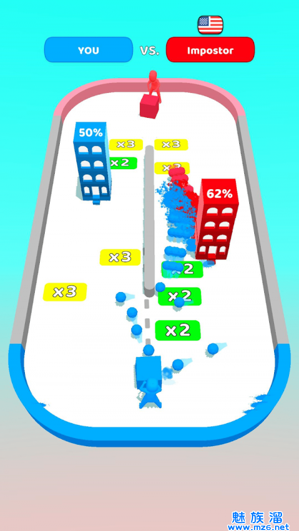 3、将您的球扔进对手的塔中以消除它们。并让它们在敌人飞溅的射击中保持活力