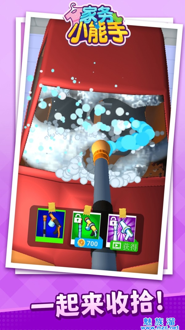 3.游戏的自由度很高,你可以解锁各种不同的清洁工具,只要方便清洁就行,选择多样。