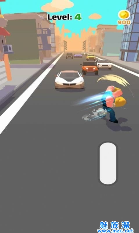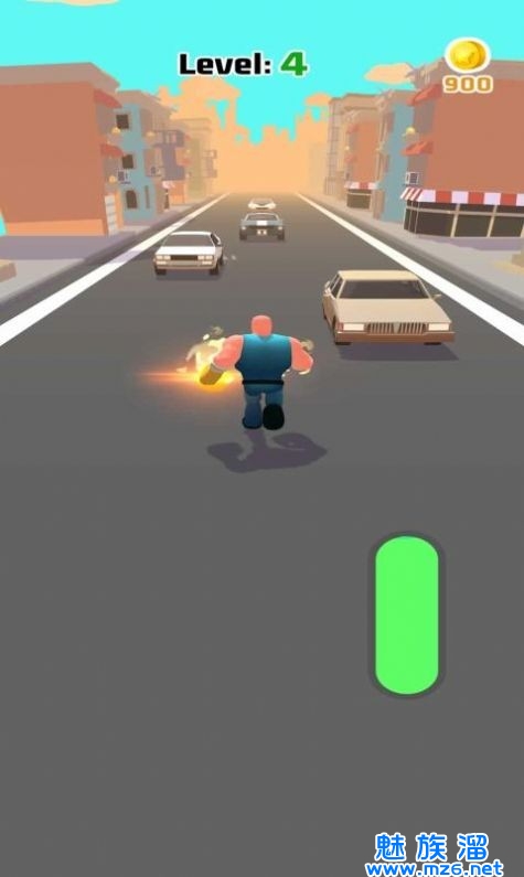 2、你将操纵一个壮男走在路上飞奔,避开汽车的碰撞,累积自身的动能,才可以造成一瞬间的暴发力;