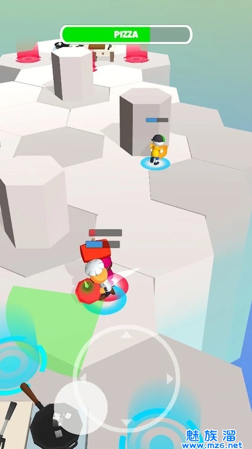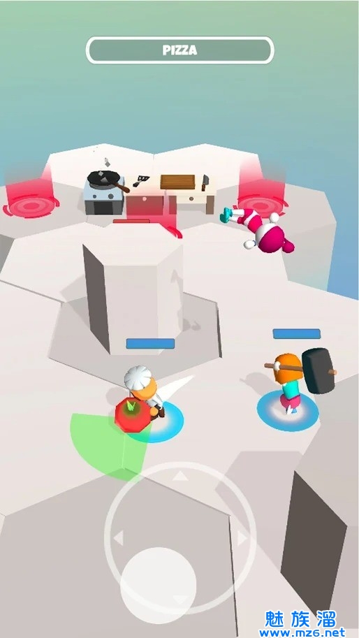烹饪团队大乱斗是一款玩起来非常有意思的休闲趣味类手机游戏,游戏中玩家需要收集各种食材,并将它们全部放入自己的厨房之中,还会有敌人冲过来抢夺你们的食物,你需要保护好你的队友,使用大锤将敌人全部消灭,成功的取得游戏的胜利,喜欢的玩家千万不要错过,快来下载开始游玩吧!