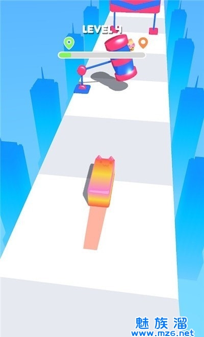 2、按住屏幕,果冻猫拉长,松开屏幕,果冻猫恢复原状,运用技巧的方法进行前行;