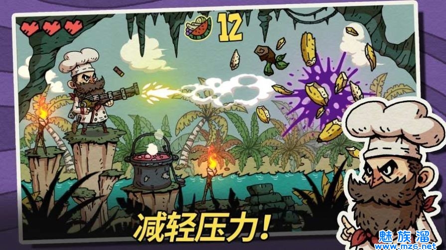 2.游戏中武器的种类各种各样,你可以去选择不同的武器来攻击各种各种水果和食材怪物,非常的新颖有趣;