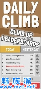 每日攀登是一款趣味十足地休闲竞技类型游戏,游戏操作相对来说不难,玩家可以轻松上手,游戏的背景音乐非常有趣,游戏画面也很简洁,带给玩家非常棒的视觉体验,玩家在游戏中需要学习攀岩的技巧,提高攀岩的速度,帮助自己轻松获得胜利,感兴趣的小伙伴快来试试吧。