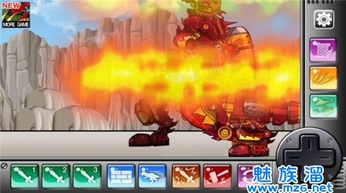 组装机械火霸王龙是一款趣味性十足的冒险闯关游戏。组装机械火霸王龙游戏中,你将有机会亲自设计、组装一只强大的机械怪兽!然后你就能去挑战那些未知的强大的机械敌人类,而且玩家还能为自己的机械恐龙加装远程攻击状态,例如火焰射击或者喷水、喷毒等等!只要你的脑洞足够的大,你的怪兽就足够的强大和离谱!