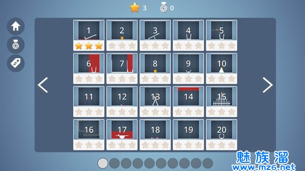 1、游戏打造了很多的游戏关卡,各个的不同的躲避障碍物让小球到制定位置的设定有意思。