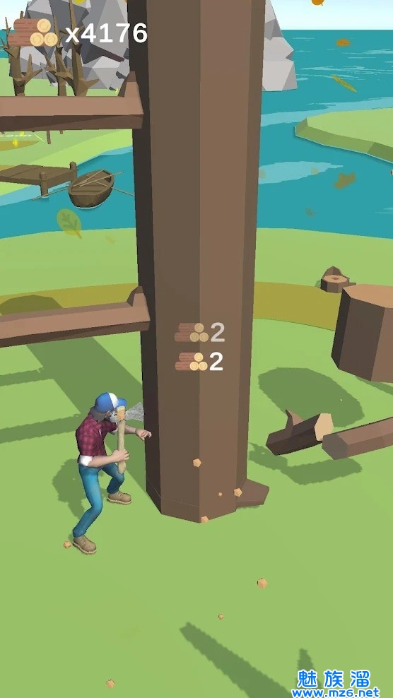 3、升级更换自己的斧头,让你能够来获得更多伐木能力。