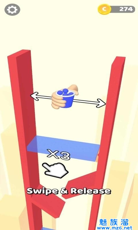 2、越是掉进杯子里,摔得越多,这样可以得到更多的分数;