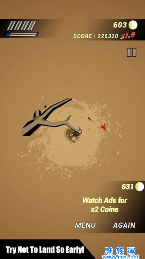 2、在你降落的过程之中还会有着各种不同的障碍物,你需要灵活的躲避;