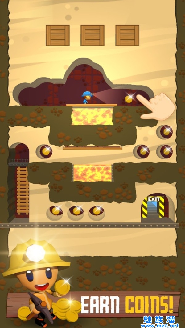 1.滑动你自己的手指就可以获得道路,让矿工可以顺着道路不断的移动自己。