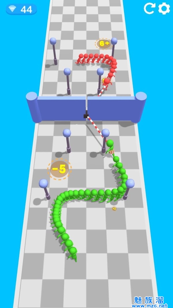 3、让你的人群不断的壮大、随着关卡的增加不断的挑战,需要将绳子缠绕起来,达到最顶峰的游戏体验,奔跑的时候要要时刻的小心。
