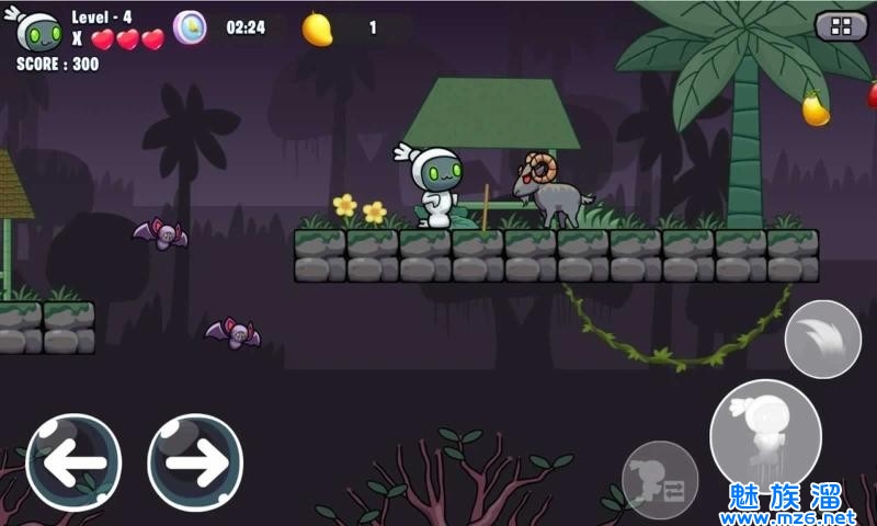 在森林中漫游,与所有敌人战斗并收集所有的水果,你能够收集多少水果呢?