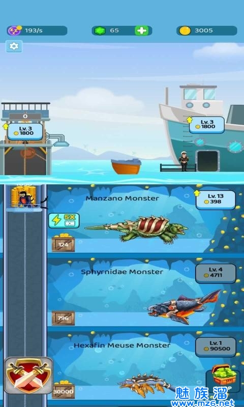 3、通过收集更多资源获得奖励,让您升级整个团队以完成更多挑战,制霸海洋消灭无数的对手。