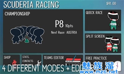 2、10 支不同的赛车队、20 位车手和 8 条赛道供您参赛!