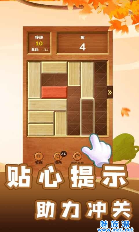 2.将这些木板顺利的移动出去,每一关的难度级别会提升起来。