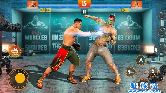 真正的健身房格斗明星非常好玩的热血格斗类游戏,游戏内为玩家提供了诸多角色任你选择,那你讲在这展开一场场精彩刺激格斗之旅,展现你高超格斗技巧快速将你的对手给击杀掉,赢得对战胜利成为一代拳王,游戏可玩性极高,在这还有着诸多格斗技巧等你来学习!