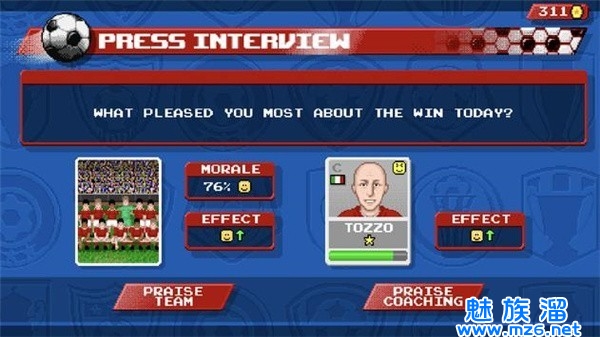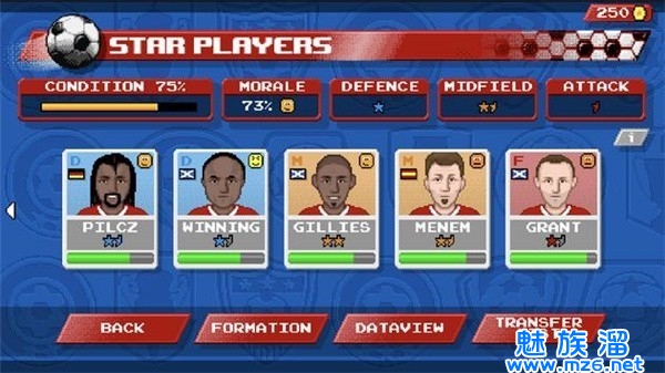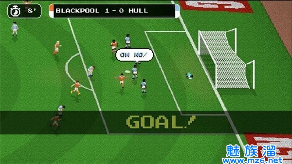 4、一款像素画风的足球运动的游戏,模拟了真实的足球赛场的元素