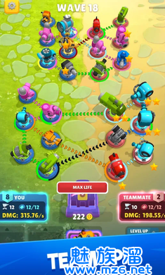 4、利用各个炮塔的独特技能,包括喷毒、冰冻、电击、火攻、爆炸等,来制造所向披靡的协同效益。