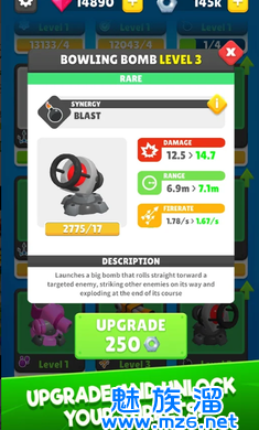3、在战斗间隙升级你的炮塔并打造新的防御设施。保持连胜,推进地图进度,补全你的炮塔名册;