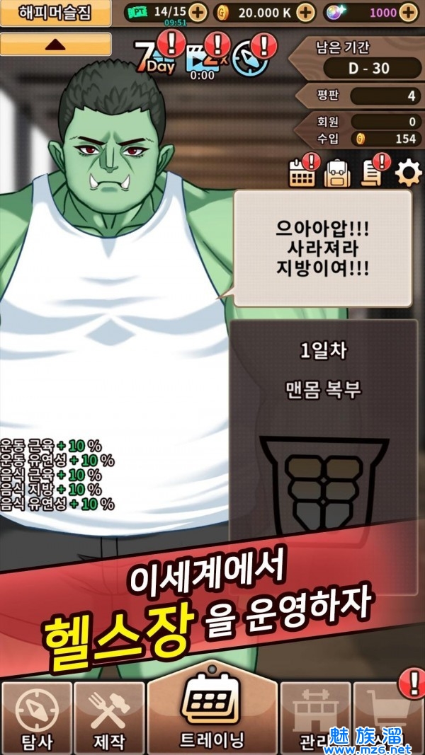 世界健身房游戏是一款非常好玩的模拟健身类型的游戏,玩家可以在游戏中体会到健身的快乐,不仅要进行锻炼还要进行科学的饮食,玩家可以边玩游戏还可以学到很多健身的知识,有很多种健身项目等你来挑战哦,感兴趣的小伙伴快来下载游戏玩耍吧。