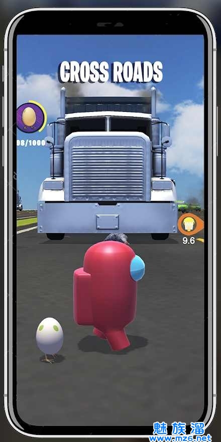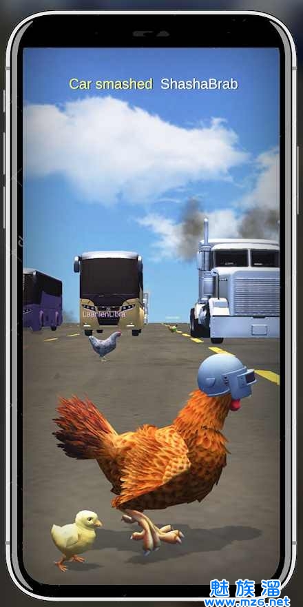 4、在游戏中玩家要带着小鸡一起过马路,非常多的汽车在道路上,但是好在玩家有一些保护,