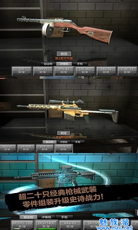 3、游戏中武器的使用种类是丰富的,你可以进行自由的组装来进行升级的。