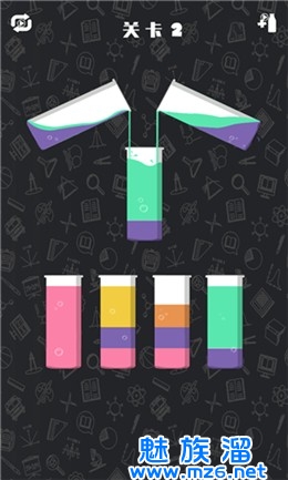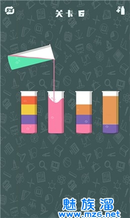简单的操作玩法模式,你可以控制水瓶来倒入不同的液体,让液体变换不同的颜色。