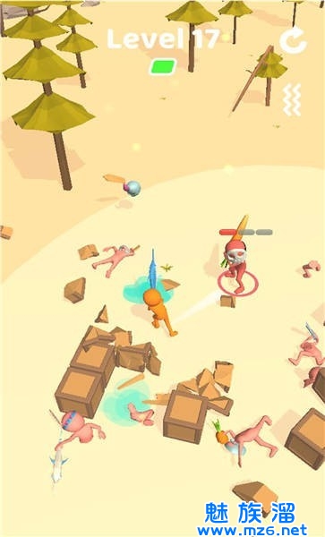 玩家可以自由的控制角色行动,通过挥舞手中的武器消灭对手;