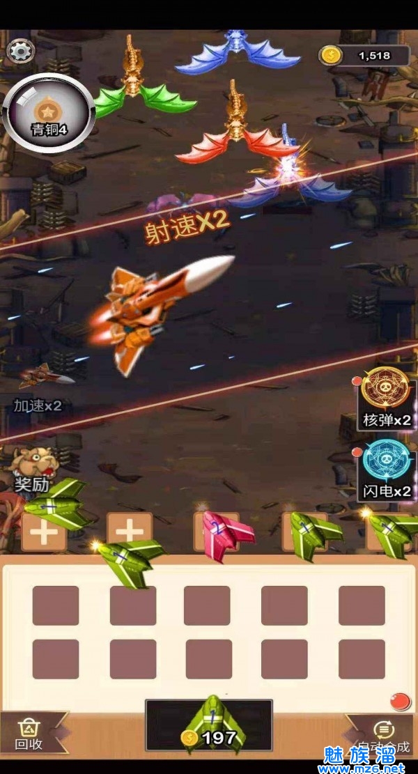 1、炫酷激情射击场面,满屏的飞机,和漫天飞舞的子弹激光,让你仿佛回到了从前的街机雷电的场景。