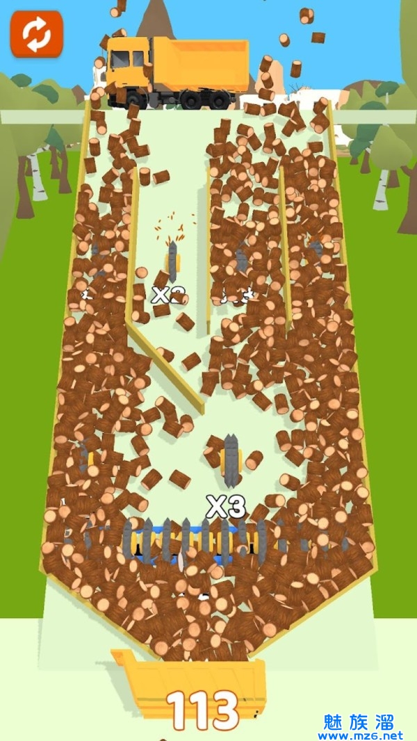 2.所有的长木头都被切成小块。很多木头等着你去砍会有很好的减压效果。