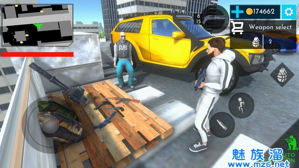 1、开放都市模拟器的玩法很自由,玩家也可以自由操控小人,自由驾车和射击敌人。