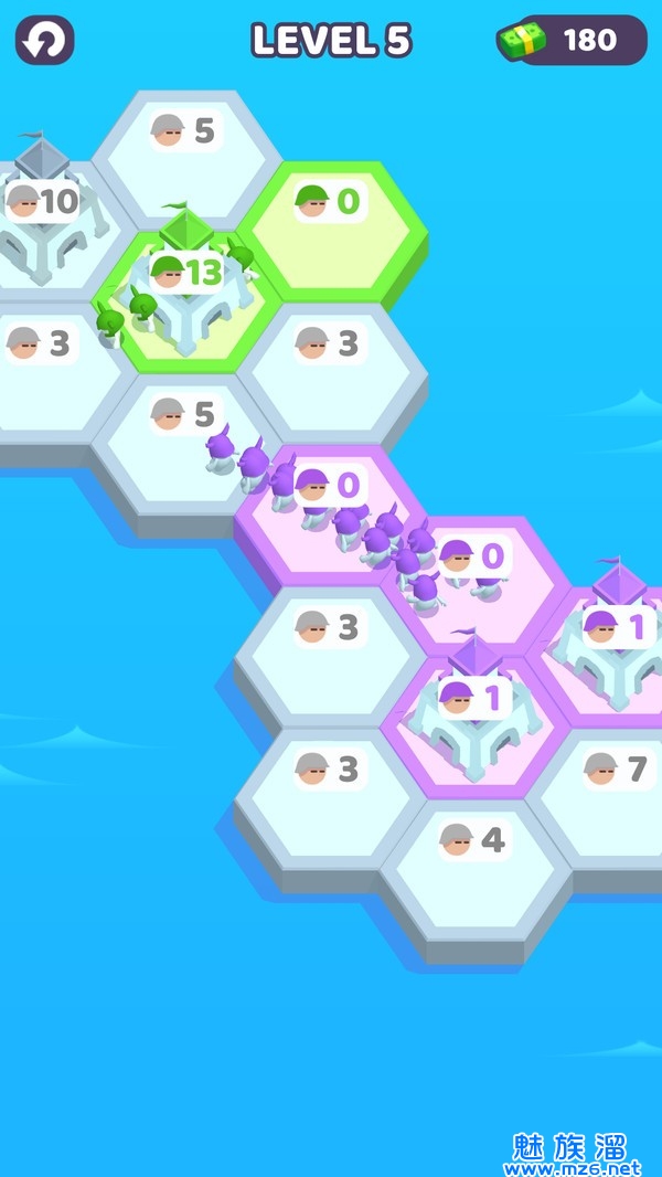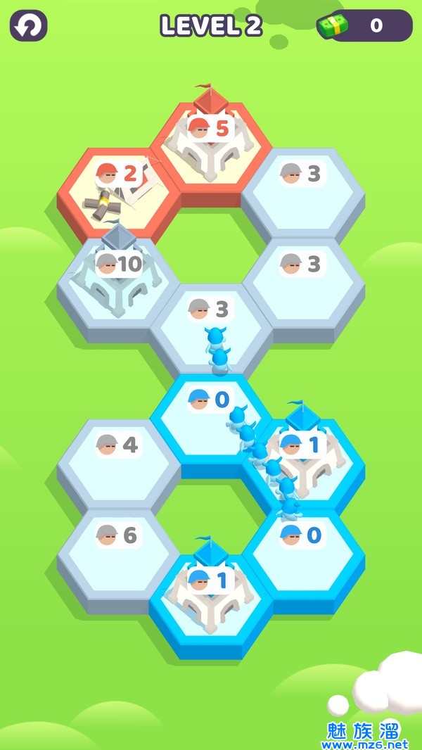 3、占领更多六边形的格子才能获得成功,闯关也是需要一定的策略性的噢。