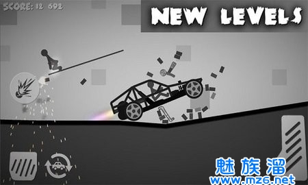 1、玩家通过选择的战车出战,撞飞沿路的火柴人,不要被其他汽车撞击而停下。