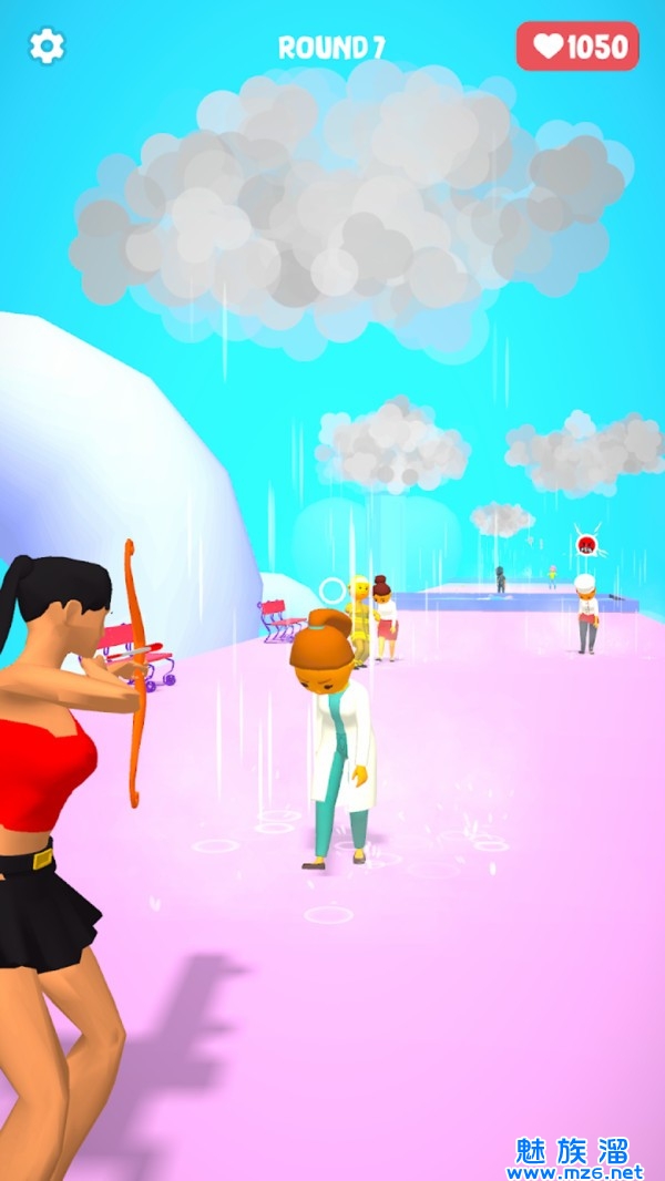 1、跑道中有着众多的NPC,他们全部都是单身狗,你需要利用手里的弓箭,帮助其找到合适的伴侣。
