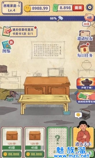 2、根据目标选出正确的选项过关,不断为老家装修建设更多内容,同时收集人物碎片,解锁新故事。