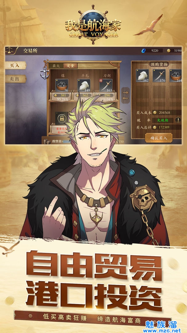 我是航海家这款游戏以航海为主题,在游戏中你可以建立出属于自己的船队,你就是所有船员们的领航员,全部都得听你的,一起完成各种挑战。你可以在各个港口进行自由贸易,打造出属于自己的商业帝国哦,在这过程中你还会遇到各种不同的危险,生病等都是需要玩家及时处理的哦。