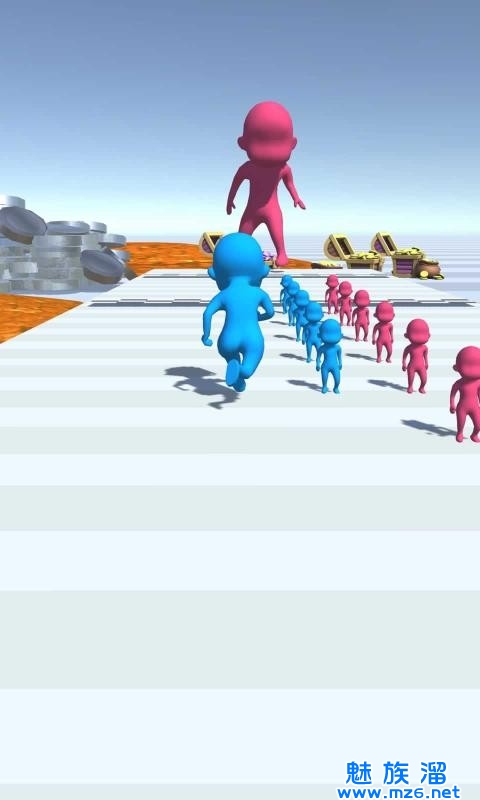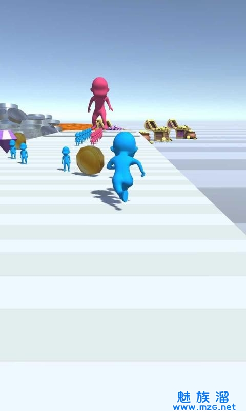 3、玩家操控小人偶,在前进的道路上尽可能多接触相同颜色的人偶,使其自己不断的变大。