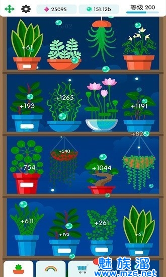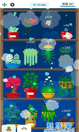 2、盆子里有很多不同种类的植物,需要玩家适当培养和浇灌。