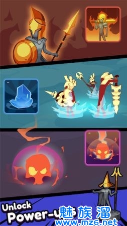 3、通过战斗不断解锁技能,让你的战士更强大,熟练使用各种战士,体验战斗的快感;