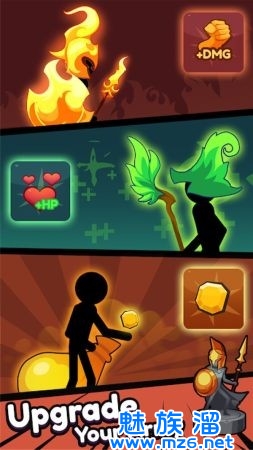 1、解锁各种技能来让火柴人变得强大,击败关卡中的所有敌人;
