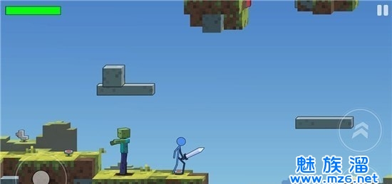 1、游戏使用了和我的世界很像的方块风格建筑,并且和火柴人进行了结合,让这个游戏玩起来比较的有特色。