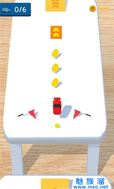 在桌子上控制小汽车向前跑穿越所有的障碍,同时收集更多的金币。