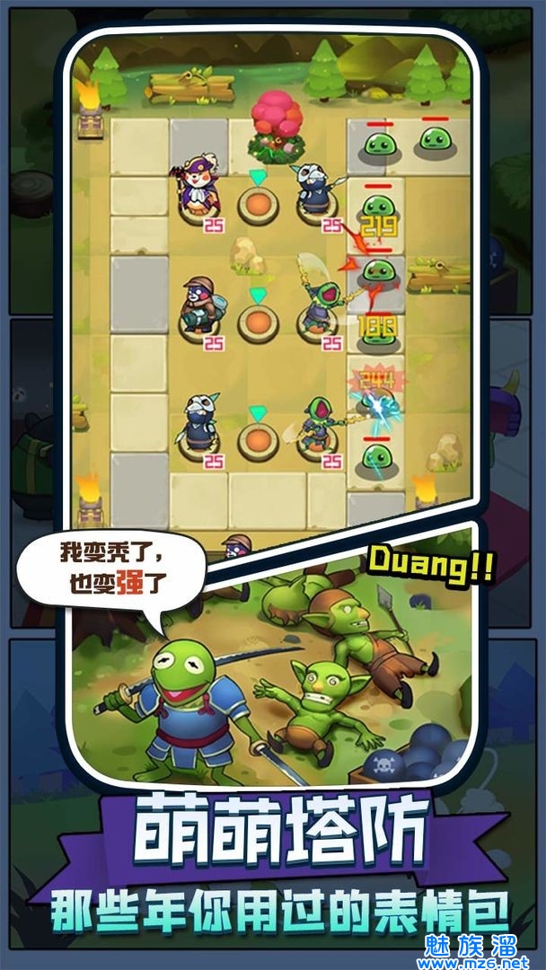 2、通过策略塔防的形式进行战斗,在游戏中你将与这些英雄们一起守护自己的城堡;