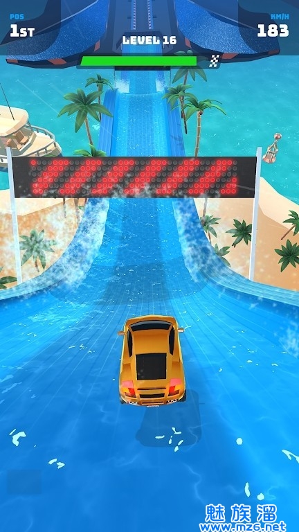 1、你需要保持车辆全速前进才能让它不会送跑道上掉落出去,还得控制的很好;