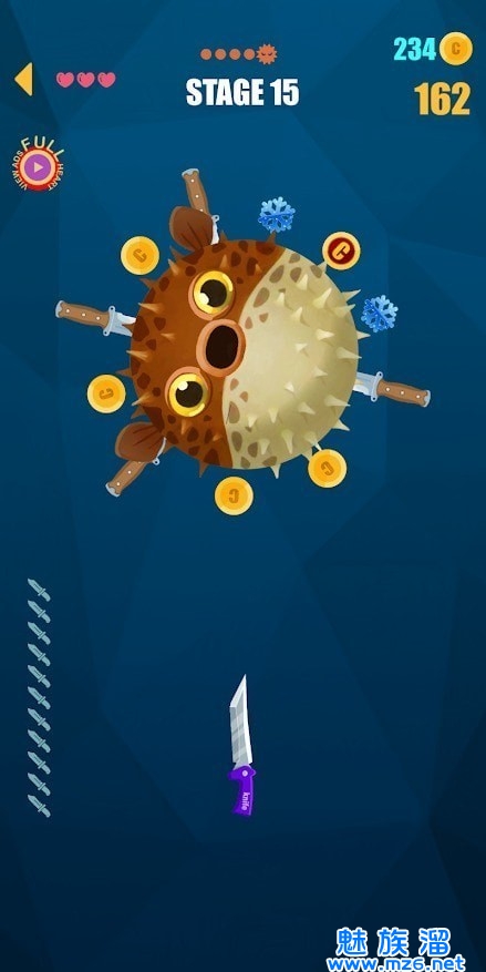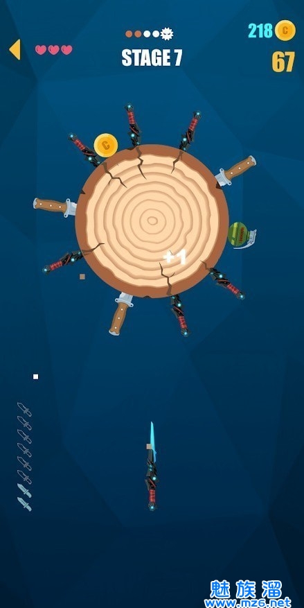 2、飞刀切木板游戏打造简单轻松的点击扔飞刀的游戏玩法;