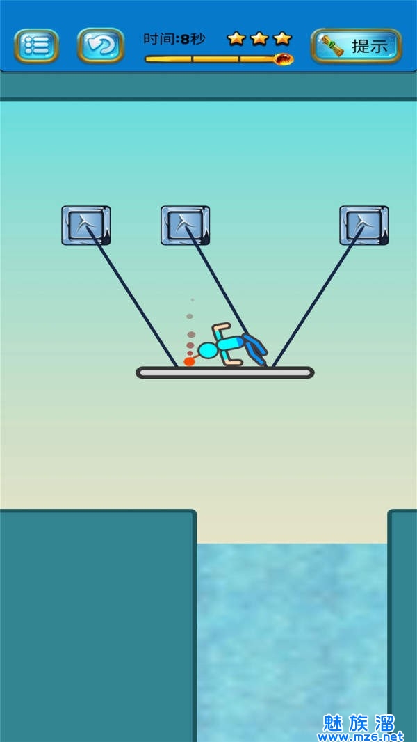 3.只要有了非常清晰的思路就可以进行下一步动作,割断绳子,保龄球会掉下来,