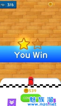 3、在桌子上控制小汽车向前跑穿越所有的障碍,同时收集更多的金币。